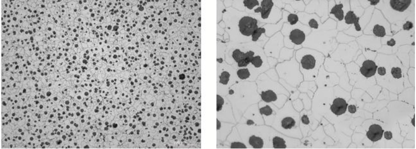 Hori dela eta, behaketa enpirikoan oinarrituta, burdin hakorraren karbono baliokidearen goiko muga iristen da urtutako grafitoa ikusten denean (1200 °C inguruko tenperaturan). Karbono edukiaren eragina burdin hakorraren errendimenduan: burdin hakorraren galdaketaren karbono edukiak solidoaren batez besteko tamainan, grafitoaren edo prezipitatutako grafitoaren batez besteko tamainan eragiten du. esferak. Normalean, karbono-edukiaburdina harikor galdaketak%2 eta %3,9 artekoa da, baina funtsezkoa da karbono-edukia murrizteak burdinurtuaren propietate mekanikoetan duen eragina ulertzea. Hau kontuan hartu behar da egituraren, dimentsioen, hormaren lodieraren eta aldameneko hormen planoen horma-lodieraren akatsen arabera.burdina harikor galdaketak. Burdina harikorraren karbono-edukia % 4 ingurutik % 2,5era murrizteak trakzio-erresistentzia eta etendura-erresistentzia apur bat handitu ditzake (23 eta 31 N/mm² inguru) eta luzapena ere % 5 inguru handitzen du, inpaktu-balioetan hobekuntza nabarmenekin.